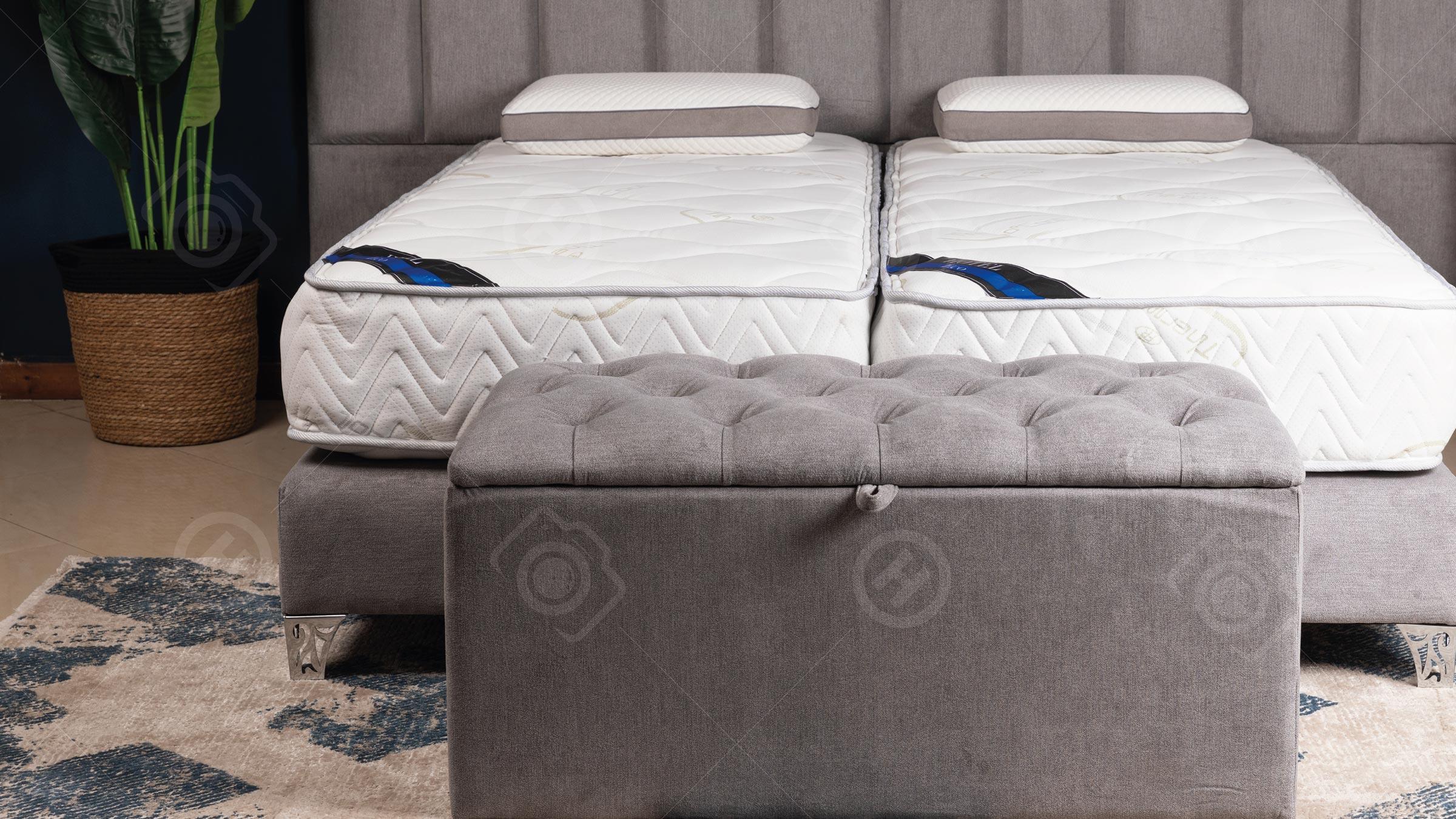 عند مقدمة السرير، يمكن استخدامه لتخزين المخدات والاغطية وابقائها قريبة للاستخدام. عملي وراقي وفخم جدا، ومقعد مثالي لارتداء الأحذية.